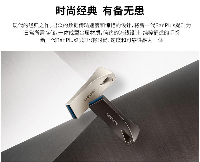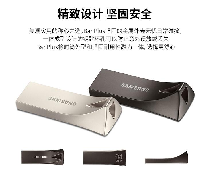 三星優(yōu)盤(pán)64GB USB3.1 U盤(pán) BAR升級(jí)版+高速汽車(chē)載歌曲金屬外殼精致