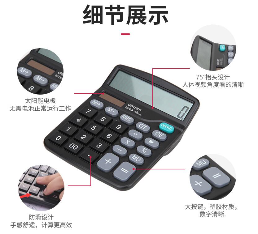 得力837計(jì)算器辦公用會(huì)計(jì)專(zhuān)用太陽(yáng)能學(xué)生用帶語(yǔ)音大學(xué)財(cái)務(wù)小號(hào)便攜雙電源計(jì)算機(jī)器按鍵文具辦公用品大號(hào)